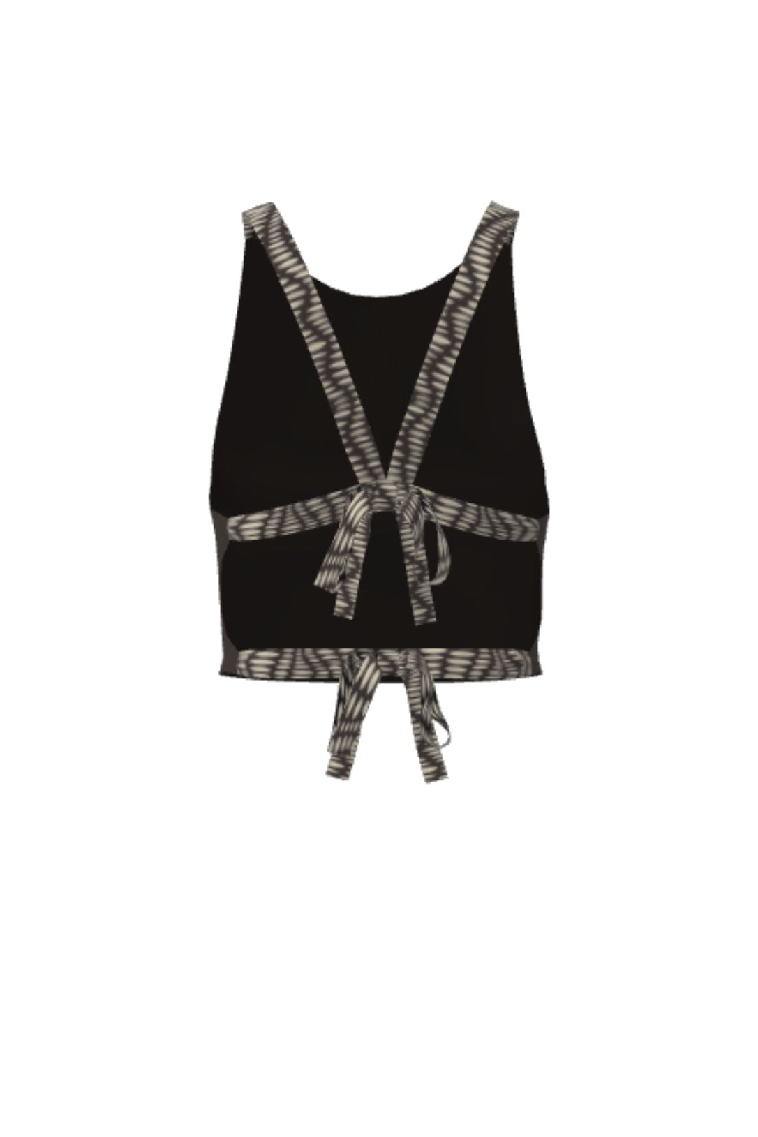 A tried-and-true design with a high neckline from the front, this tank top is complete with an elegantly constructed set of ties that accentuate your backside. The epitome of staple in the front, party in the back.