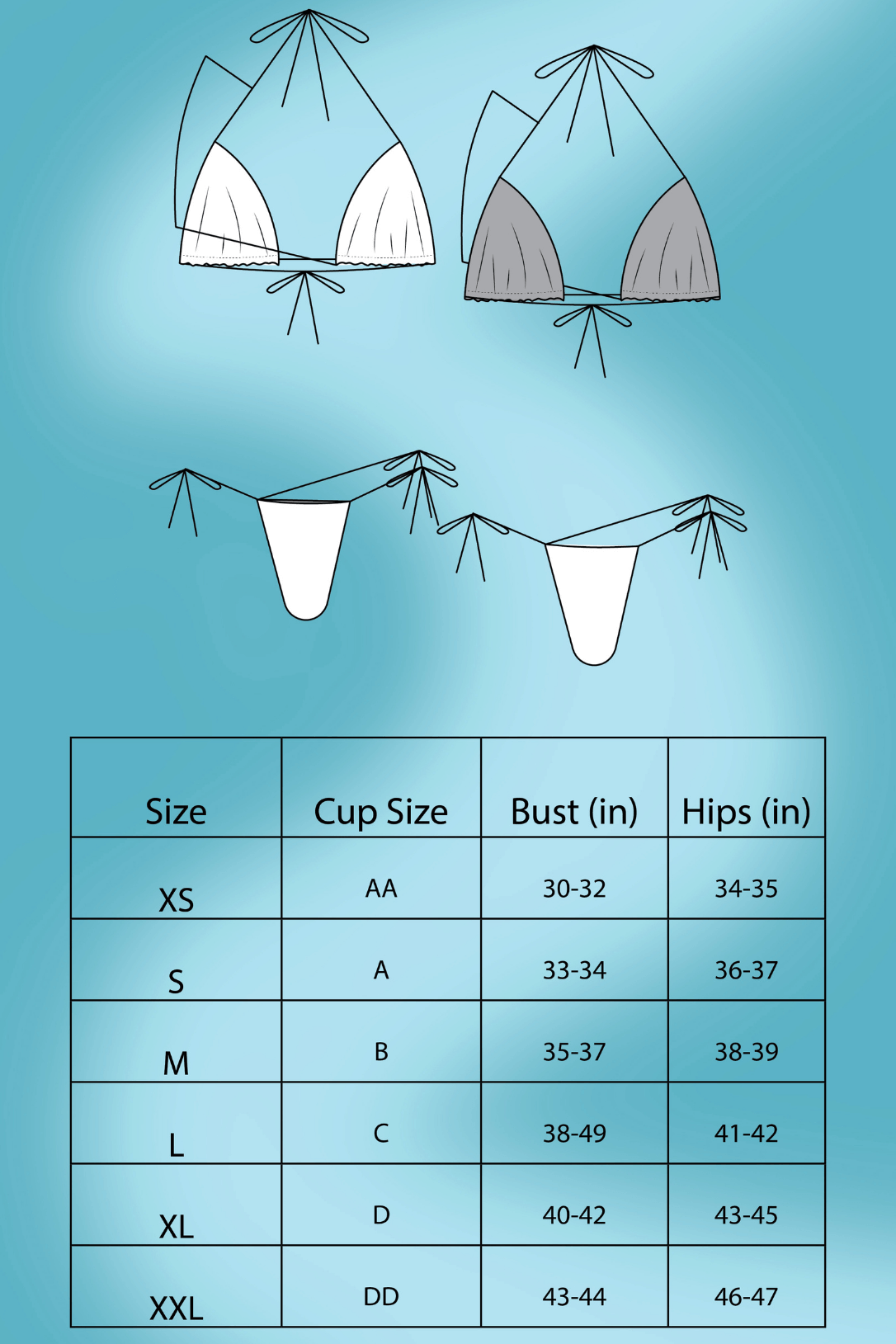 MACI is a spin our our classic triangle top design with minimal coverage, and skimpy undies, perfect for when you dare to bare a little more. This is for the girls who love micro-bikinis.