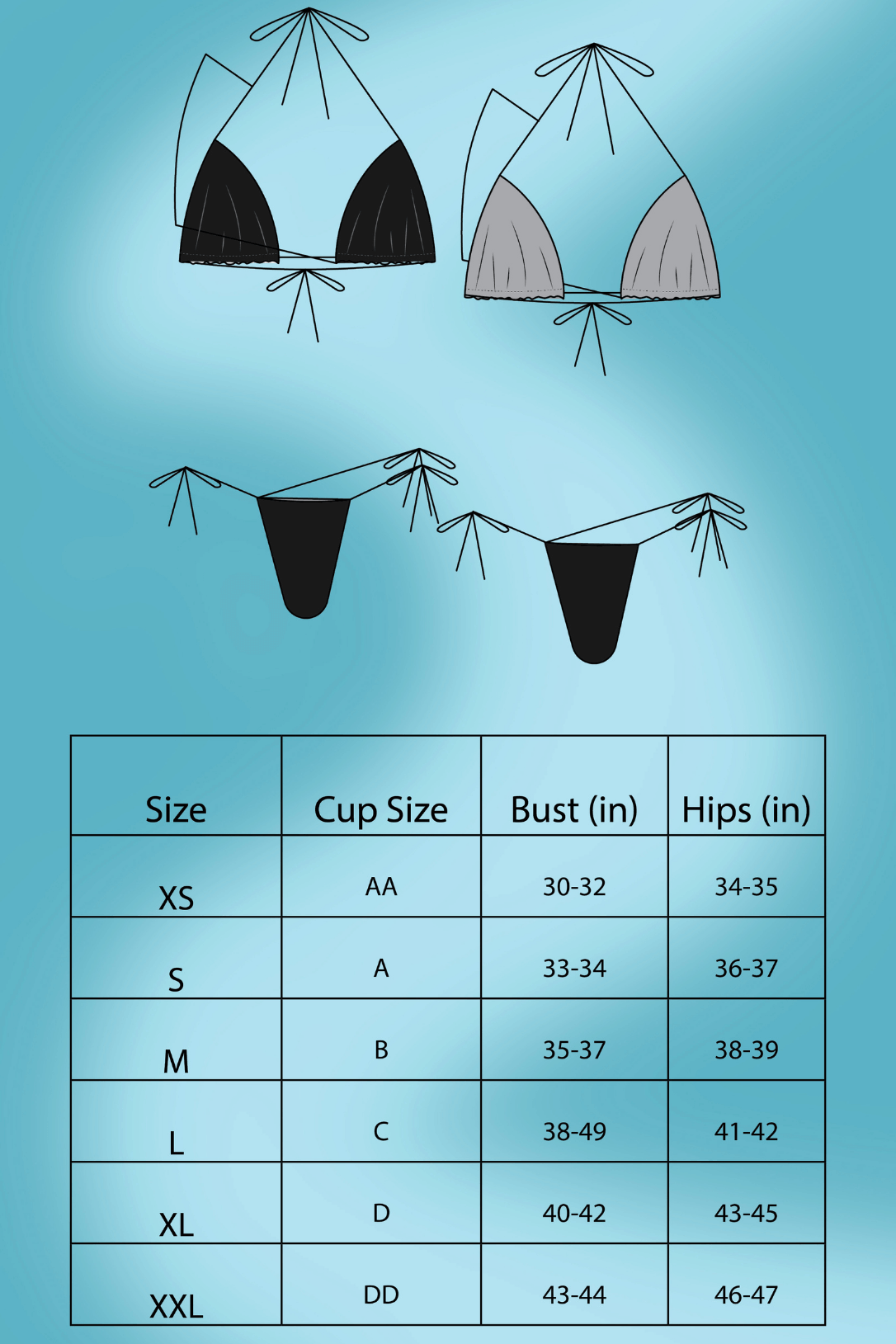 MACI is a spin our our classic triangle top design with minimal coverage, and skimpy undies, perfect for when you dare to bare a little more. This is for the girls who love micro-bikinis.